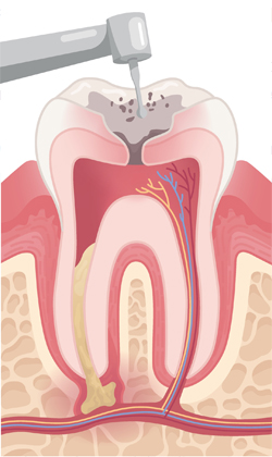 When a tooth is severely damaged or decayed, an infection can form and spread to the nerve tissue and pulp. To repair and save the tooth, a root canal treatment is performed by our endodontist. During the root canal procedure, the infected nerve and pulp are removed and the inside of the tooth is cleaned and sealed.