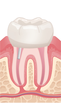 A tooth that has had a root canal treatment is not as sturdy as before, due to the removal of a large portion of the pulp. Thus it is common that the root canal treatment is followed by restorative procedures to place a post, core and crown.