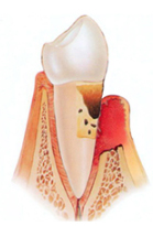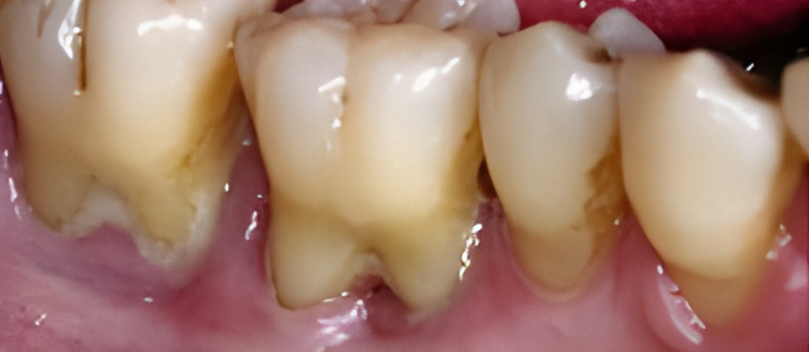 In this later stage, half or more of the original bone holding the tooth is lost, and the pocket becomes very deep. The gums recede even more and the tooth may appear longer because the root is exposed. The tooth may eventually fall out due to a lack of supporting bone.