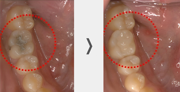 When the cavity is too big for a composite resin filling, an inlay is recommended. It is a fabricated, custom-fit restoration and can be made of porcelain or gold.
