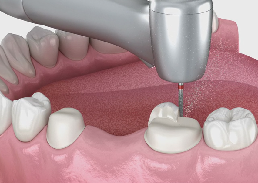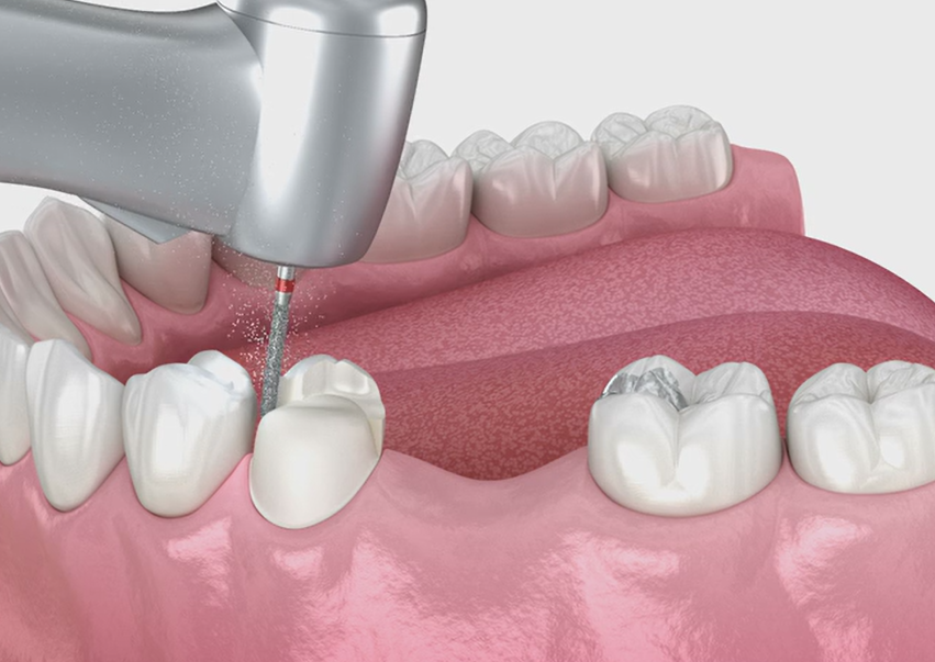 During the crown procedure, a molded impression of the tooth is taken to fabricate the final crown. A fitted crown is created and temporarily placed while the final restoration is being made. It takes about two visits to complete this treatment.