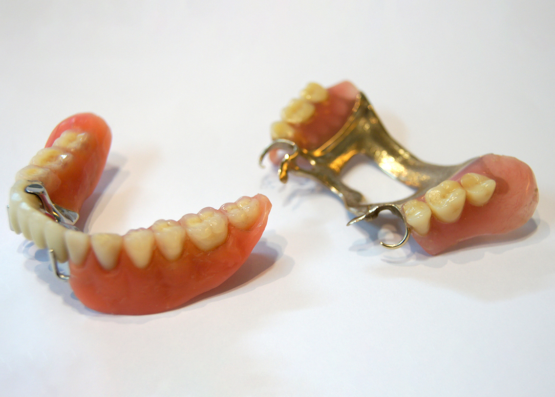 For those who have several missing teeth and whose teeth are not strong enough to support a bridge, a partial denture is used. In this type of denture, clasps fit onto the adjoining natural teeth and the framework fits directly on the gums.